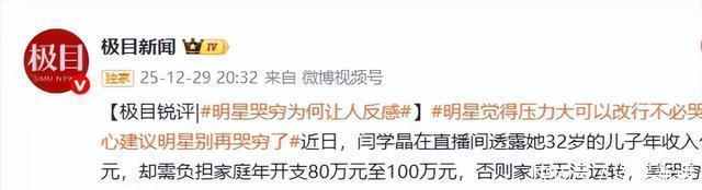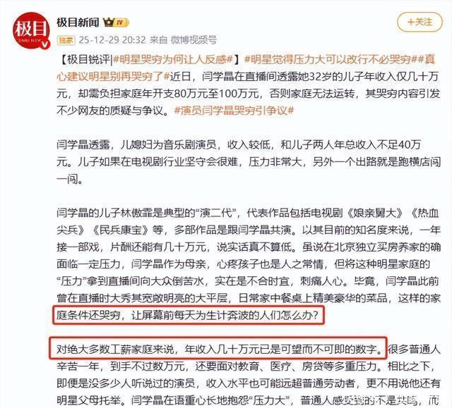 闫学晶的社交账号 极目新闻|【极目锐评|#明星哭穷为何让人反感#】2026 中国新闻周刊|知名演员,直播“哭穷”.2026