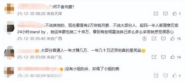 更让人反感的是,她还摆起了高高在上的姿态教育网友:“老天爷对谁都公平,一天都24小时,你们24小时在干嘛?我24小时又在干嘛?结果能一样吗?” 这话的潜台词再明显不过:普通人赚不到钱,就是因为不够努力,只会整天瞎议论。 这番嚣张的回应,直接把网友的不满推向顶点,原本只是吐槽她哭穷,现在彻底变成了对她傲慢、脱离群众的愤怒。