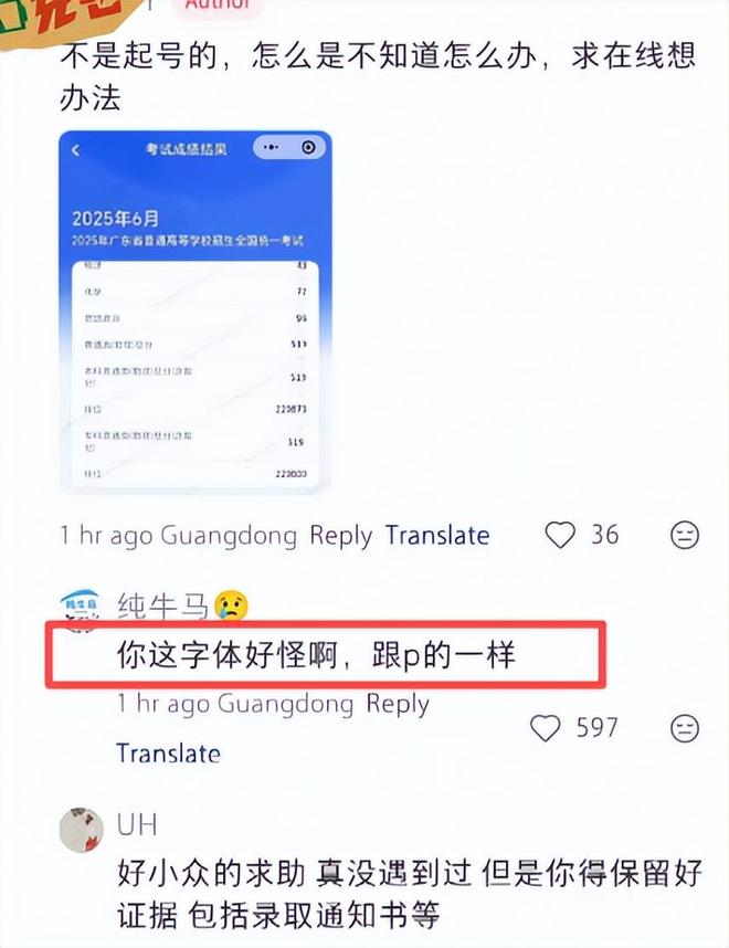 在一众网友的分析和推断之下,他们也很快明白了真相:这位女生因为成绩不理想,无法面对家人期待,便动手修改了成绩单截图,甚至购买了假冒的录取通知书来欺骗家人。